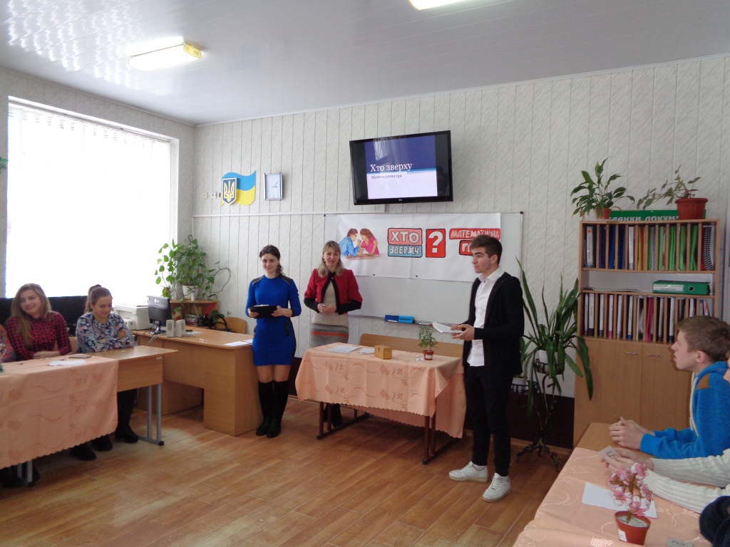 Зацікавити студентів математикою, показати її могутність і красу, примусити полюбити її – завдання кожного вчителя математики. Велика роль у підвищенні інтересу студентів до математики належить позакласним заходам: конкурсам, інтелектуальним іграм, математичним вікторинам. Кожне нове покоління учнів цікавиться іншими іграми, іншими конкурсами. Я пропоную сценарій гри, аналогічної до телевізійної гри – шоу “Хто зверху?”